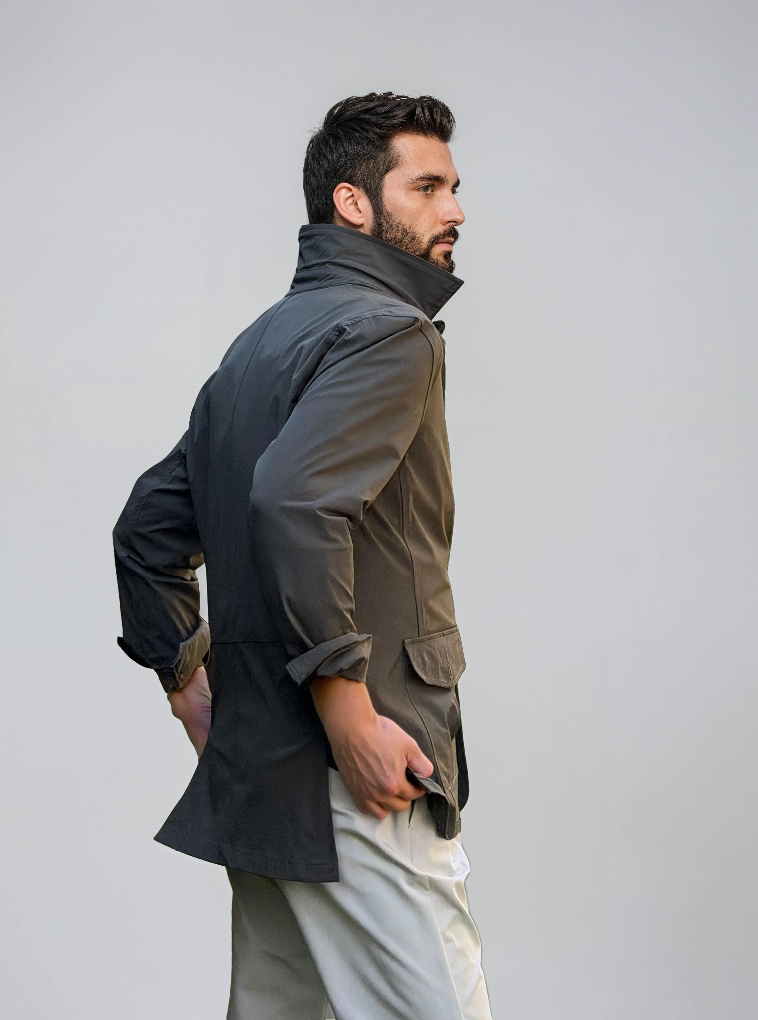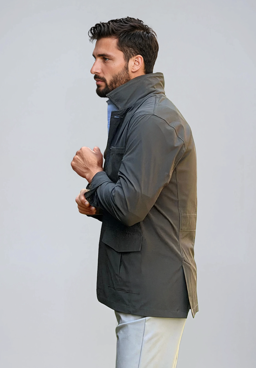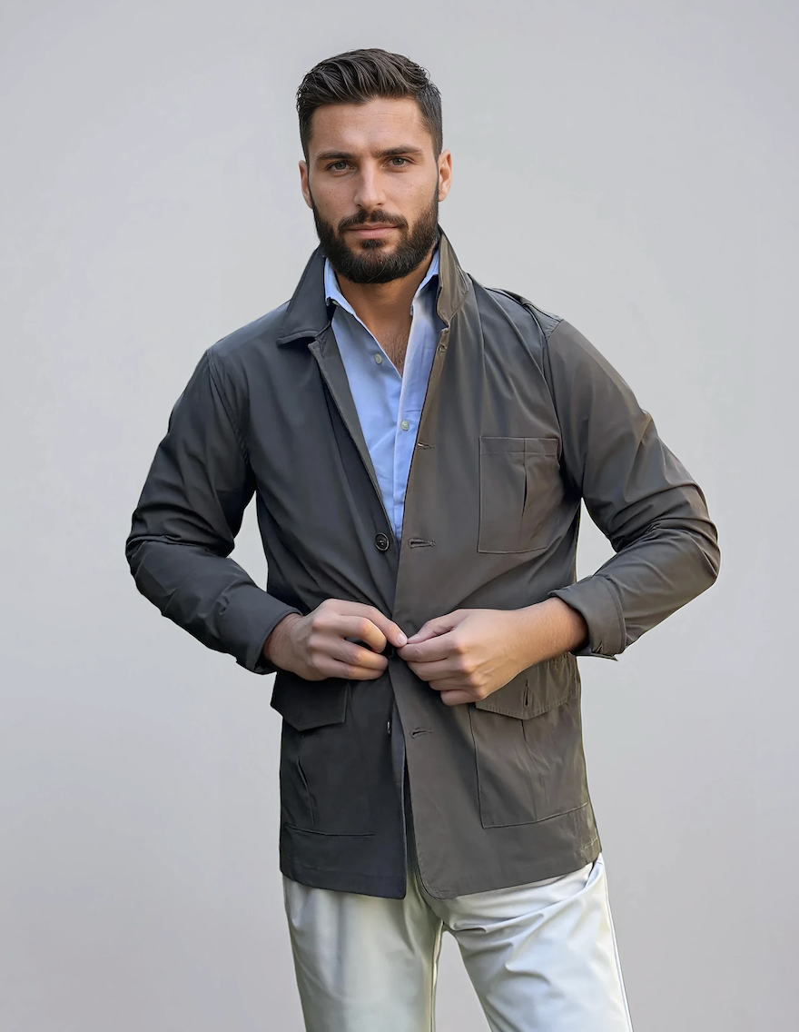Confeccionada en un tejido técnico con 15% elastano, es ligera, transpirable y flexible, no se arruga y no necesita planchado. Sus detalles de inspiración sartorial —como el cinturón trasero estilo británico y las aberturas posteriores— elevan el diseño, mientras su estructura ultracompactable la convierte en la aliada perfecta para viajar o moverte sin límites. Disponible en marino y verde, dos tonos atemporales con ADN Medusa Bay.