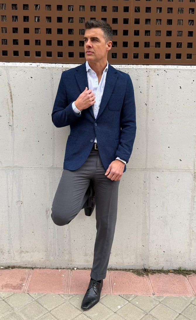 El modelo mide 1,85 y lleva una talla L