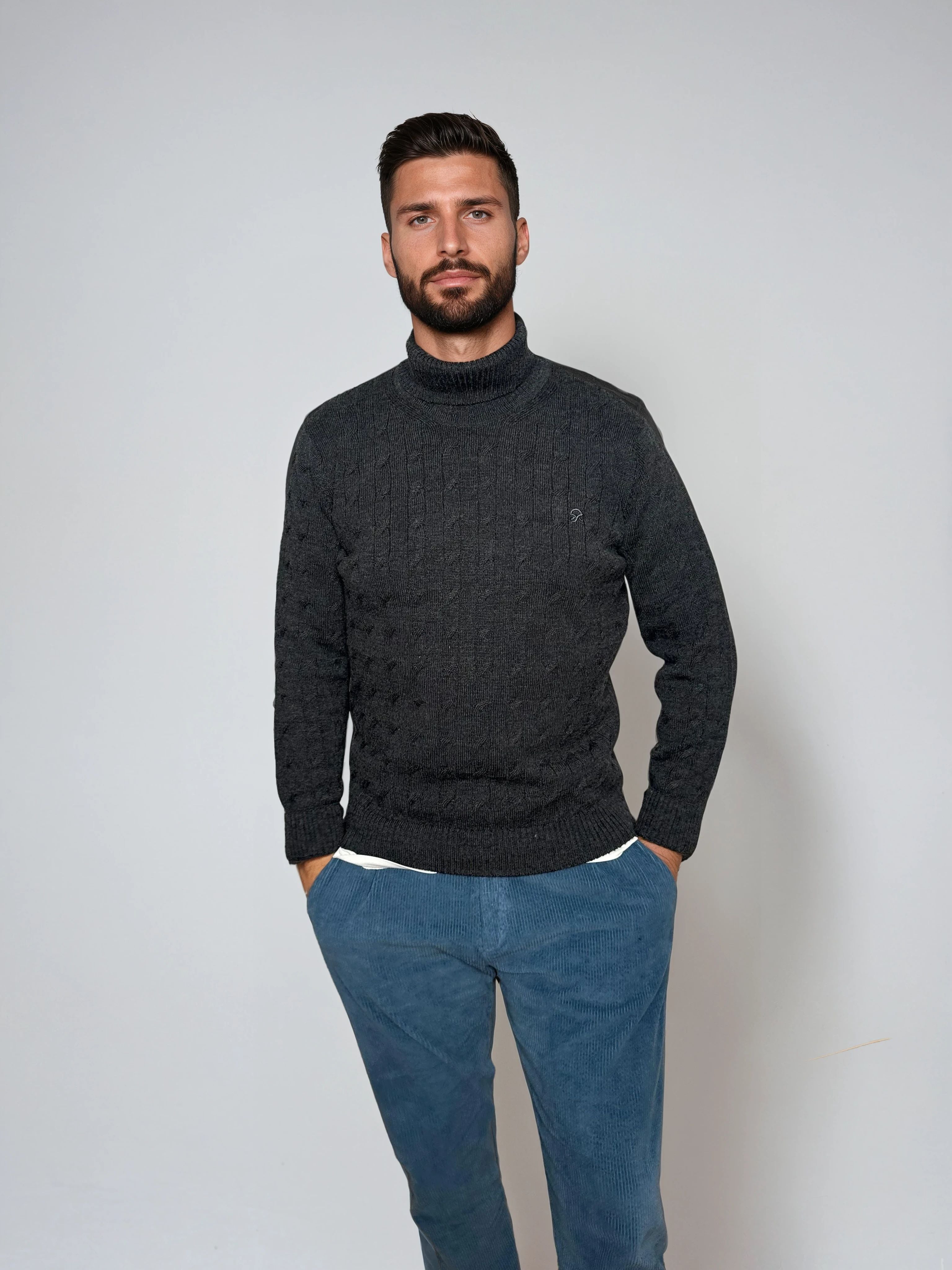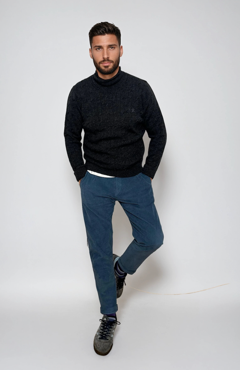 El jersey de ochos, también conocido como jersey aran, es una de esas prendas eternas que siempre ha estado presente. Un icono de elegancia imprescindible en el guardarropa. Esta versión ahora con cuello vuelto y LANA MERINO