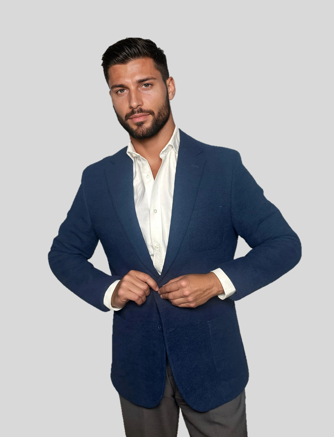 El modelo mide 1,85 y lleva una talla L