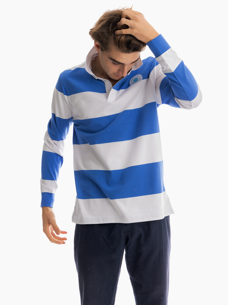 LONG SLEEVE STRIPES POLO - ROYAL BLUE