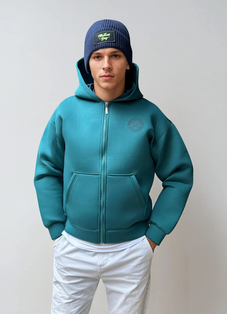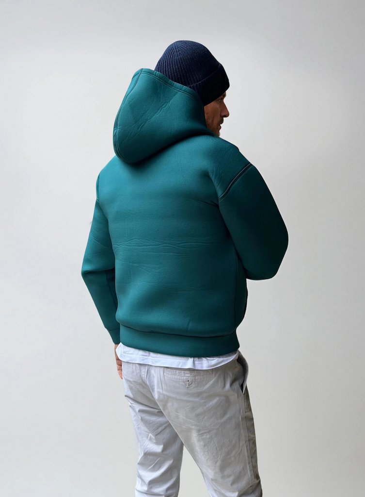 Desarrollado con un material técnico premium, evolución del neopreno, este hoodie ofrece una combinación perfecta de protección y confort.