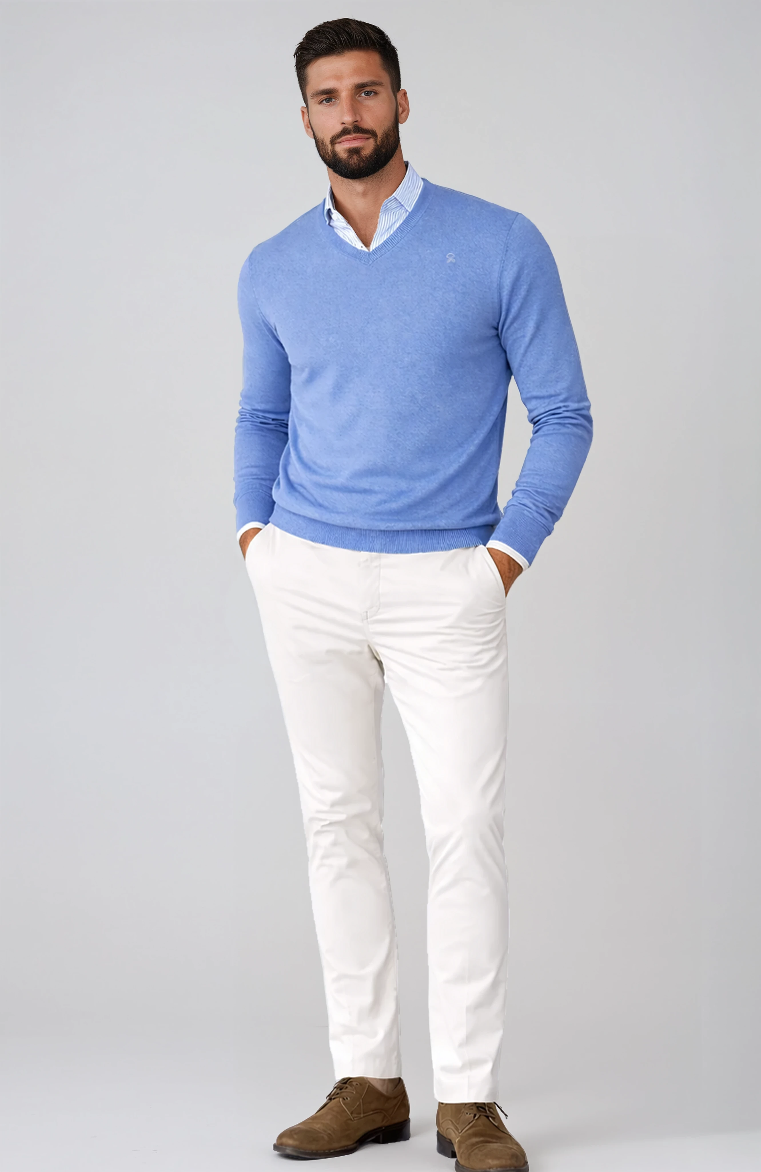 Combínalo con camisa bajo el cuello para un look refinado o llévalo solo para un estilo relajado pero impecable. Ideal con chinos, denim claro o bermudas cuando suben las temperaturas.